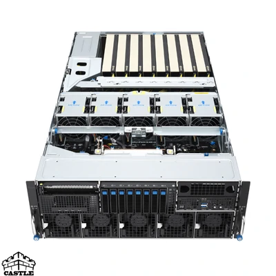 ASUS ESC8000A-E13 یک سرور قدرتمند GPU است در فرمفاکتور ۴U که برای بارهای کاری GPU-محور طراحی شده است. این سرور پشتیبانی از دو پردازنده AMD EPYC 9005 بر روی سوکت SP6 را دارد و توانایی نصب تا ۸ کارت گرافیک دو اسلاتی مانند NVIDIA H200 یا RTX PRO 6000 Blackwell را فراهم میکند.