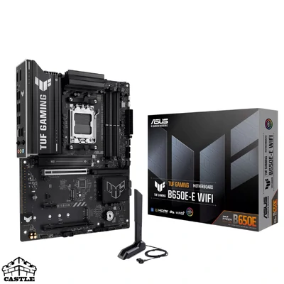 ASUS TUF GAMING B650E-E WIFI یکی از قویترین مادربردهای سری TUF ایسوس است که با چیپست AMD B650E و سوکت AM5 طراحی شده است. این مادربرد با پشتیبانی از حافظههای DDR5 با فرکانس بالا، دو اسلات PCIe 5.0، شبکهی بیسیم WiFi 6E و مدار تغذیه قدرتمند، تجربهای پایدار و سریع را برای گیمرها و کاربران حرفهای ارائه میدهد.