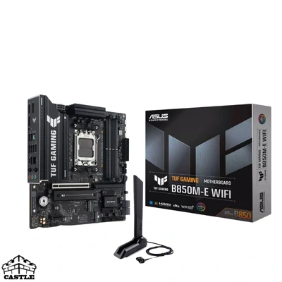 ASUS TUF GAMING B850M-E WIFI از مادربردهای جدید سری TUF ایسوس است که برای پردازندههای Ryzen نسل 7000، 8000 و 9000 طراحی شده است. این مادربرد با چیپست AMD B850، سوکت AM5 و پشتیبانی از DDR5 تا فرکانس 8000 MHz (OC)، کارایی بالا و ثبات مثالزدنی را برای سیستمهای گیمینگ و رندرینگ فراهم میکند.