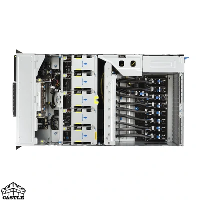 ASUS ESC8000A-E13 یک سرور قدرتمند GPU است در فرمفاکتور ۴U که برای بارهای کاری GPU-محور طراحی شده است. این سرور پشتیبانی از دو پردازنده AMD EPYC 9005 بر روی سوکت SP6 را دارد و توانایی نصب تا ۸ کارت گرافیک دو اسلاتی مانند NVIDIA H200 یا RTX PRO 6000 Blackwell را فراهم میکند.