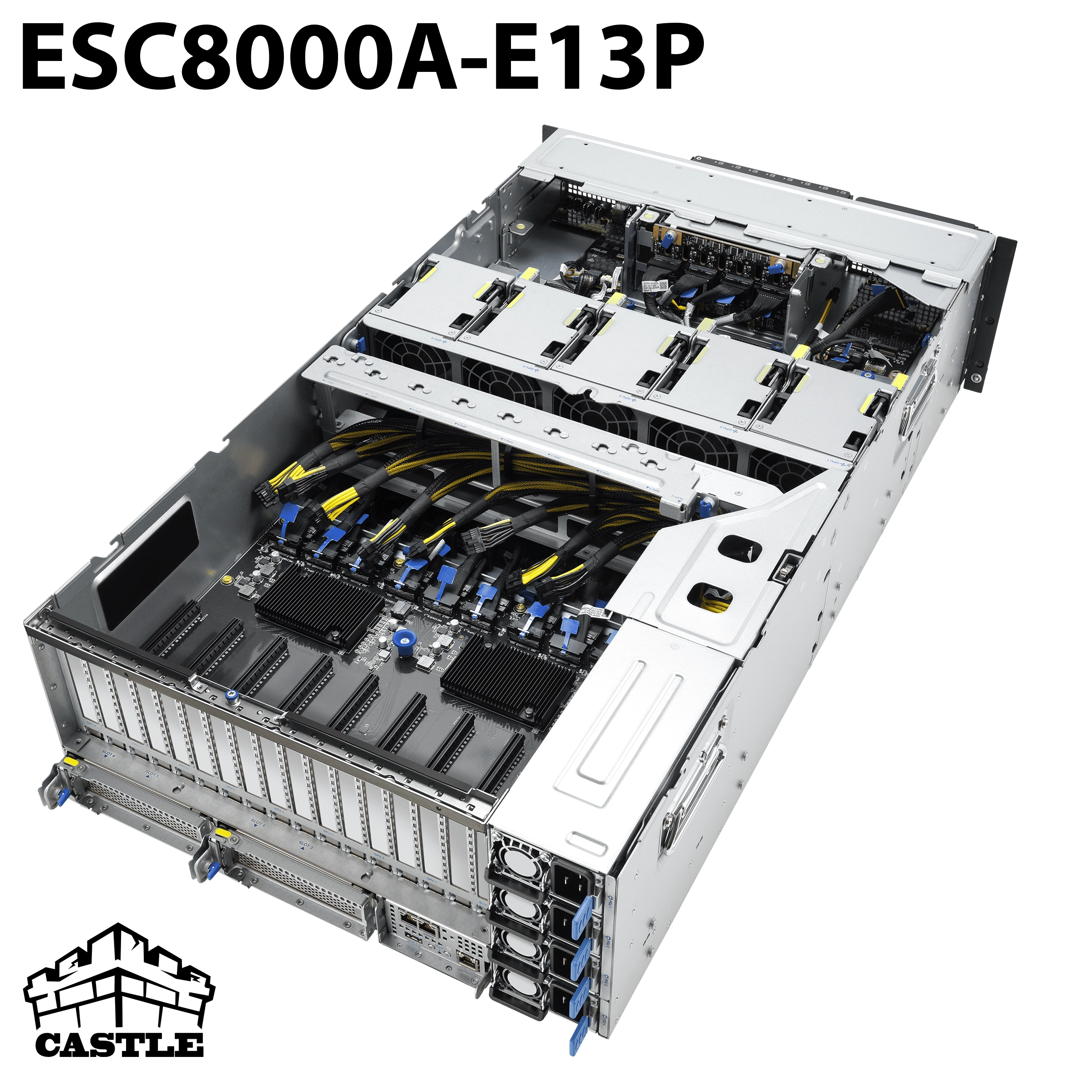 سرور ESC8000A-E13P یکی از جدیدترین شاسیهای GPU ایسوس است که برای بارهای کاری سنگین در حوزههای هوش مصنوعی، یادگیری ماشین و HPC طراحی شده است. این مدل از پردازندههای قدرتمند AMD EPYC سری 9005 پشتیبانی میکند و امکان نصب همزمان ۸ کارت گرافیک دو اسلاتی NVIDIA® PCIe 5.0 x16 را فراهم میآورد. پشتیبانی از حافظه DDR5 با ظرفیت بالا، اسلاتهای توسعه OCP 3.0 برای کارتهای شبکه پرسرعت و سیستم مدیریت از راه دور (BMC) از دیگر ویژگیهای این سرور است. طراحی خنککنندگی پیشرفته و منبع تغذیه افزونه ۳۲۰۰ وات Titanium، پایداری کامل را در بارهای پردازشی GPU-محور تضمین میکند.