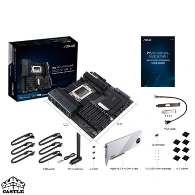 مادربرد ASUS Pro WS WRX80E SAGE SE WIFI II نسل جدید مادربردهای حرفهای ایسوس برای پردازندههای AMD Ryzen Threadripper PRO است. این مدل با سوکت sWRX8 و چیپست AMD WRX80 طراحی شده تا قدرت، پایداری و انعطافپذیری مورد نیاز برای ساخت ایستگاههای کاری پیشرفته را تأمین کند.