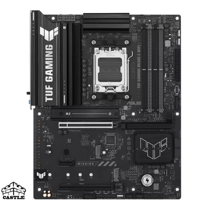 ASUS TUF GAMING B650E-E WIFI یکی از قویترین مادربردهای سری TUF ایسوس است که با چیپست AMD B650E و سوکت AM5 طراحی شده است. این مادربرد با پشتیبانی از حافظههای DDR5 با فرکانس بالا، دو اسلات PCIe 5.0، شبکهی بیسیم WiFi 6E و مدار تغذیه قدرتمند، تجربهای پایدار و سریع را برای گیمرها و کاربران حرفهای ارائه میدهد.