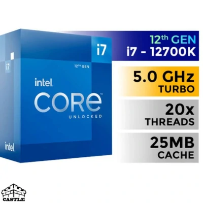 پردازنده Intel Core i7‑12700K با معماری هیبریدی (۸ هسته Performance + ۴ هسته Efficient)، ۲۰ رشته، فرکانس توربو تا ۵.۰ GHz و حافظه کش ۲۵ MB؛ اورکلاکپذیر و مناسب گیمرها، تولیدکنندگان محتوا و کاربران حرفهای که به دنبال عملکرد بالا هستند.